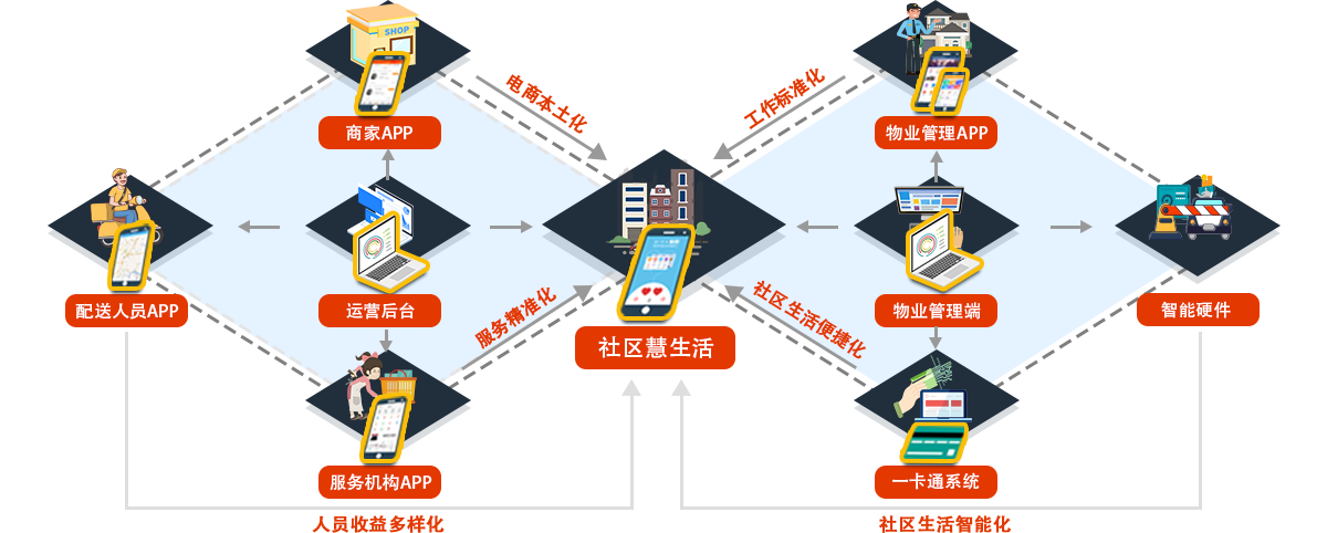 物業(yè)管理系統(tǒng)、智能硬件、一卡通系統(tǒng)、社區(qū)商業(yè)系統(tǒng)全面切入,打造完整智慧社區(qū)生態(tài)鏈